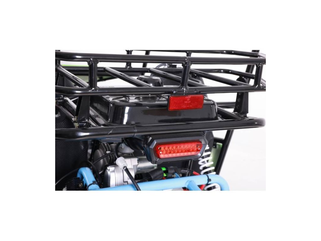 Vozidlo je vybaveno 1 ocelovým prostorným kufrem v zadní části vozidla. Díky tomu bude vaše dítě moci přepravovat potřebné věciPrvky zlepšující bezpečnost jsou bezesporu: bezpečnostní pásy a regulace rychlosti, díky které přizpůsobíte výkon dovednostem uživatele.