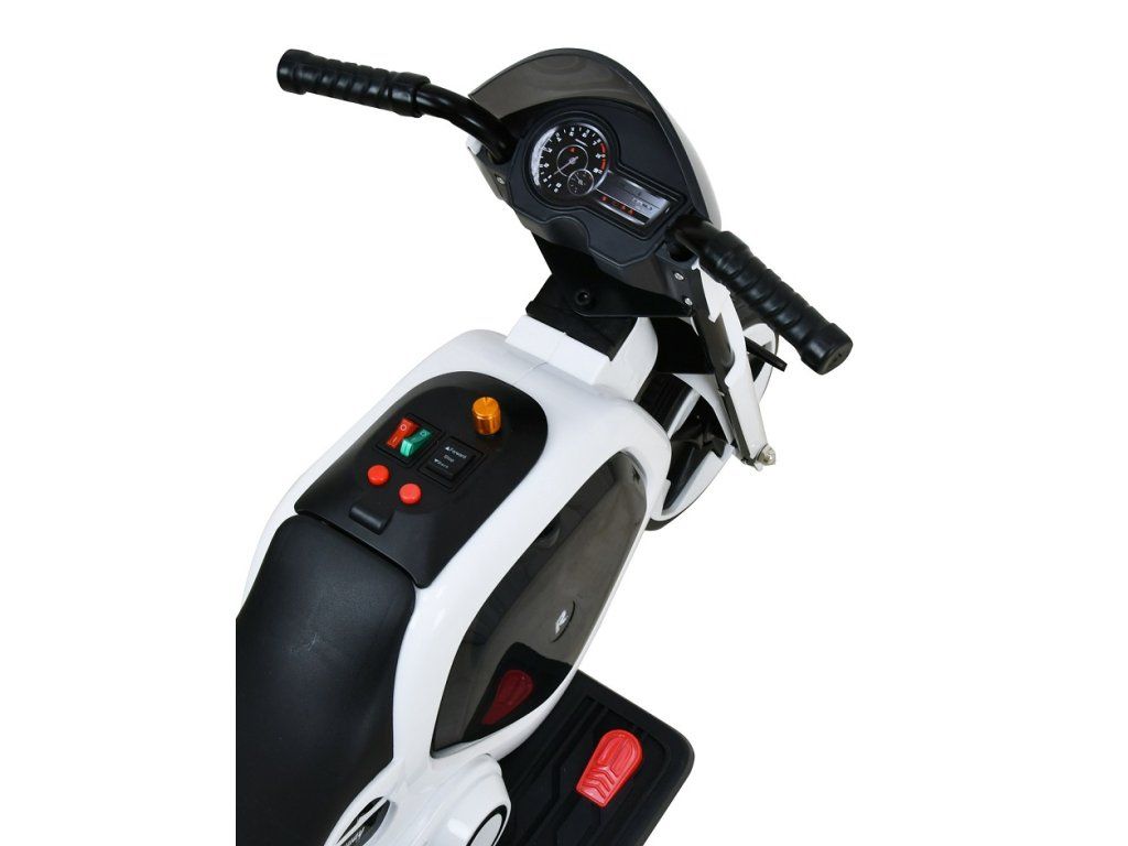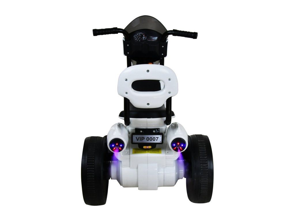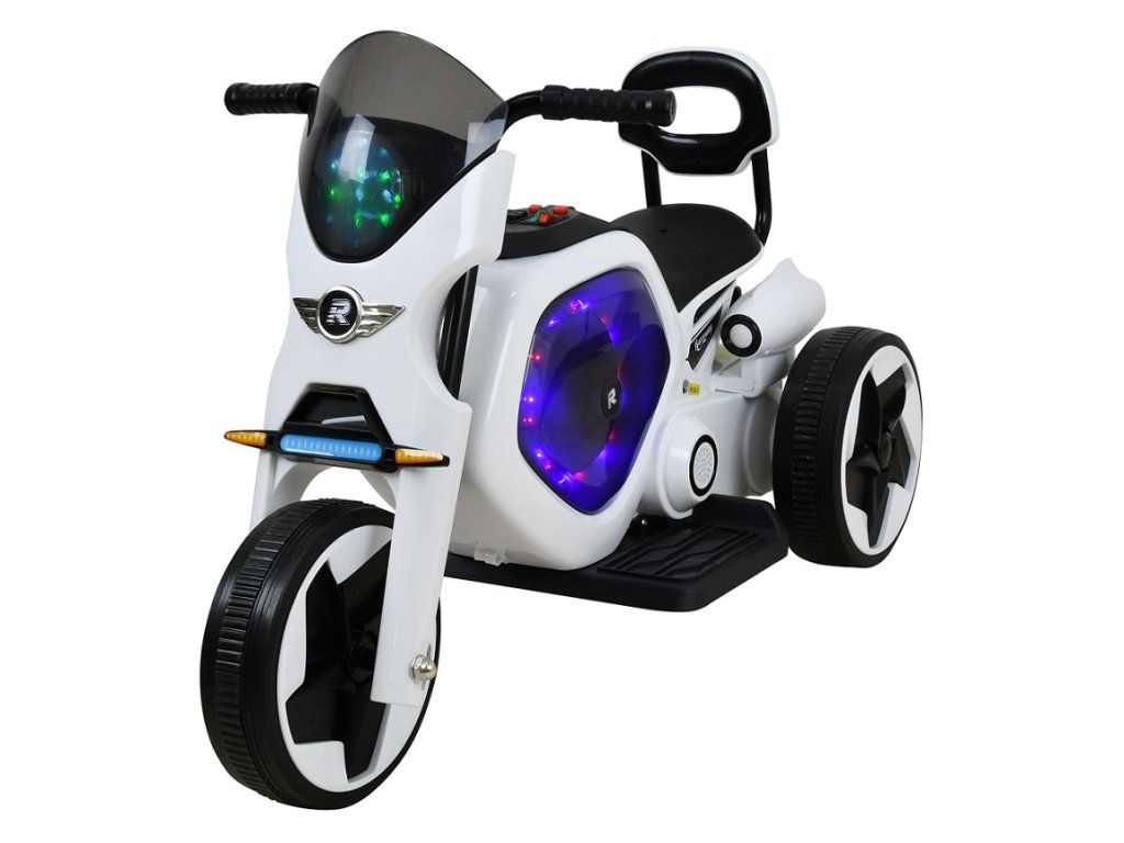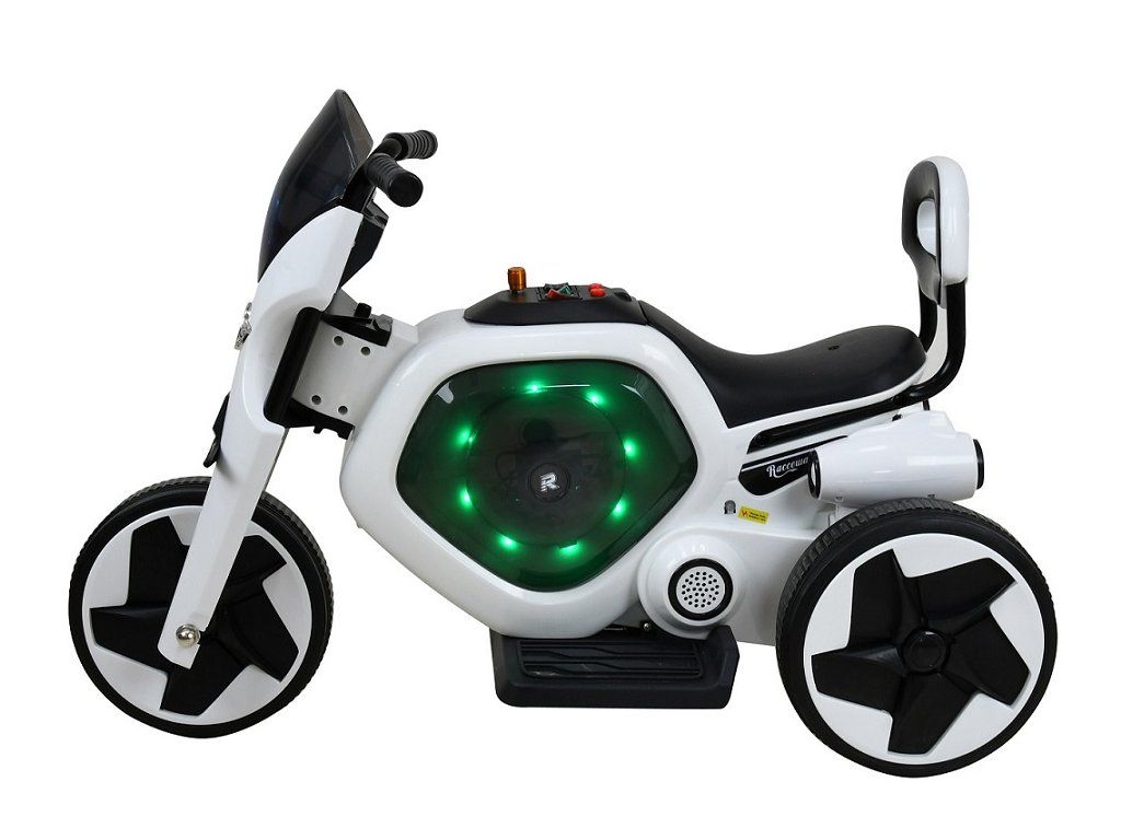 Dětská elektrická trojkolka v moderním designu na dobíjecí akumulátor. Trojkolka je určena pro jedno dítě a je vyrobena z odolných plastů. Stisknutím tlačítka lze zapnout zvukové a světelné efekty. Chod trojkolky je ovládán pomocí plynového pedálu, který je umístěn na stupátku.- elektrický motor