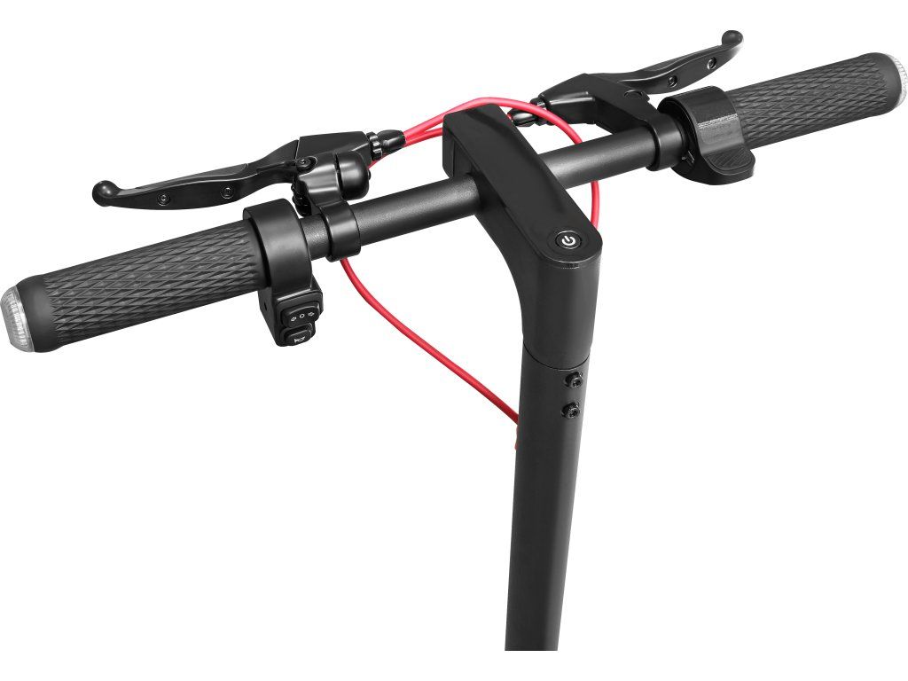 Dvě kotoučové brzdy koloběžku hbitě zastaví před nečekanou překážkou. Se širokými řídítky 52cm máte jízdu pod kontrolou i při vyšších rychlostech či v terénu.