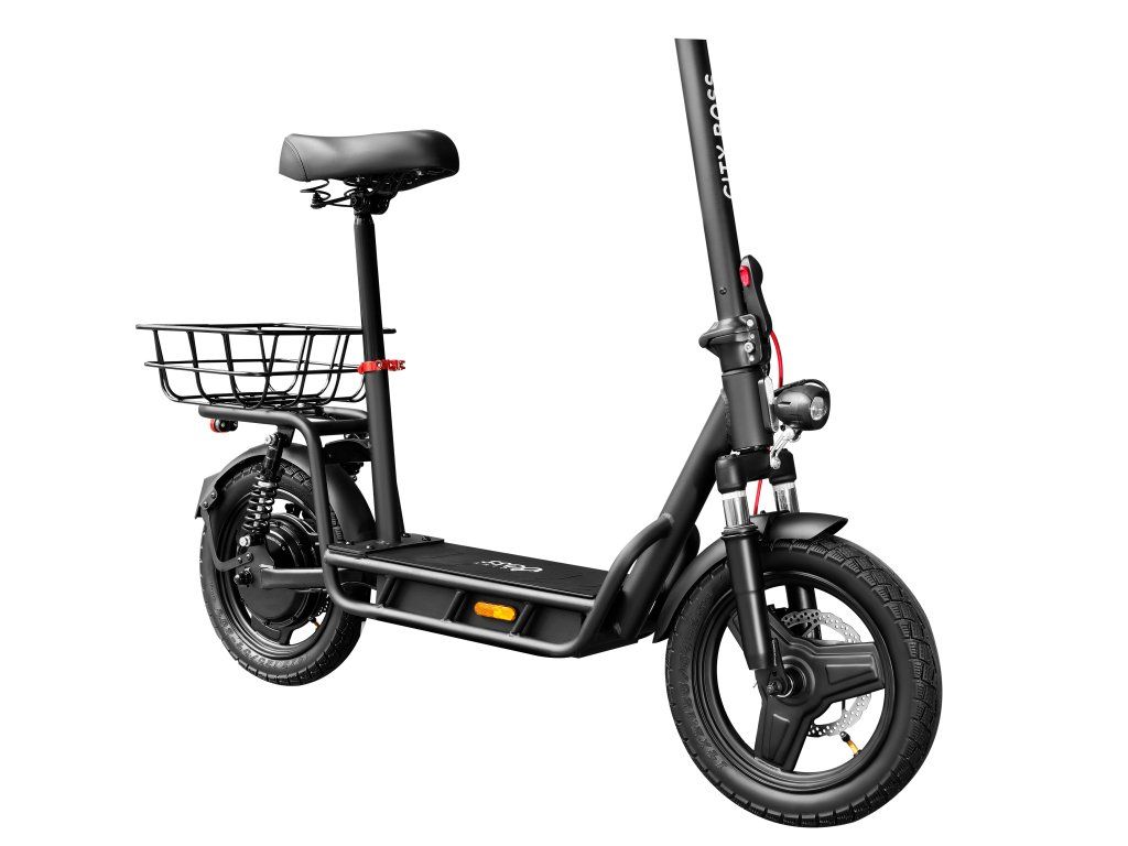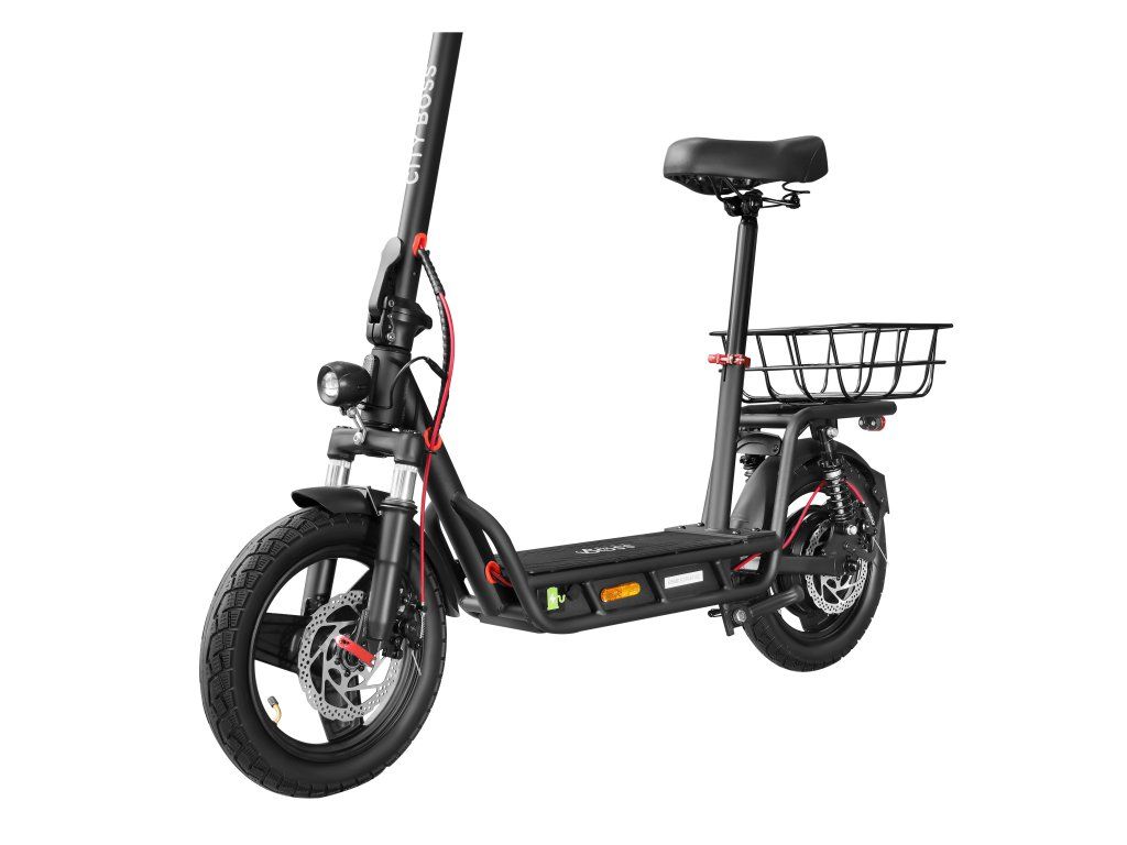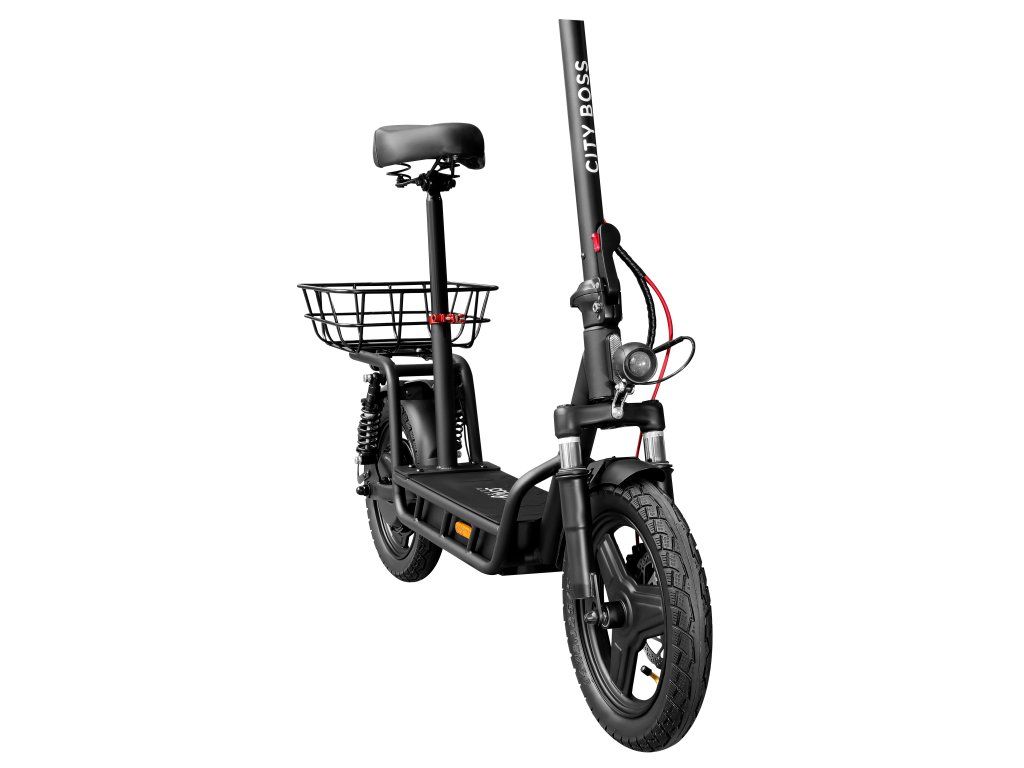Výkonná elektrická koloběžka City Boss Z600 je vybavená stabilním sedátkem a jízda na ní je zážitkem pro mladší i starší uživatele bez rozdílu. V minimalistickém designu se snoubí pohodlí, síla a bezpečnost.