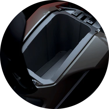 Úložný prostor v přední části motocyklu byl speciálně navržen s ohledem na vaše pohodlí, pro praktický a bezpečný způsob uložení vašich věcí.