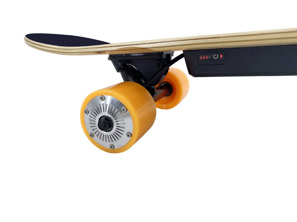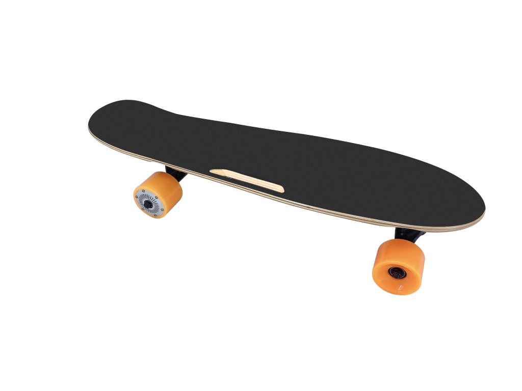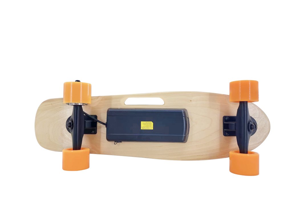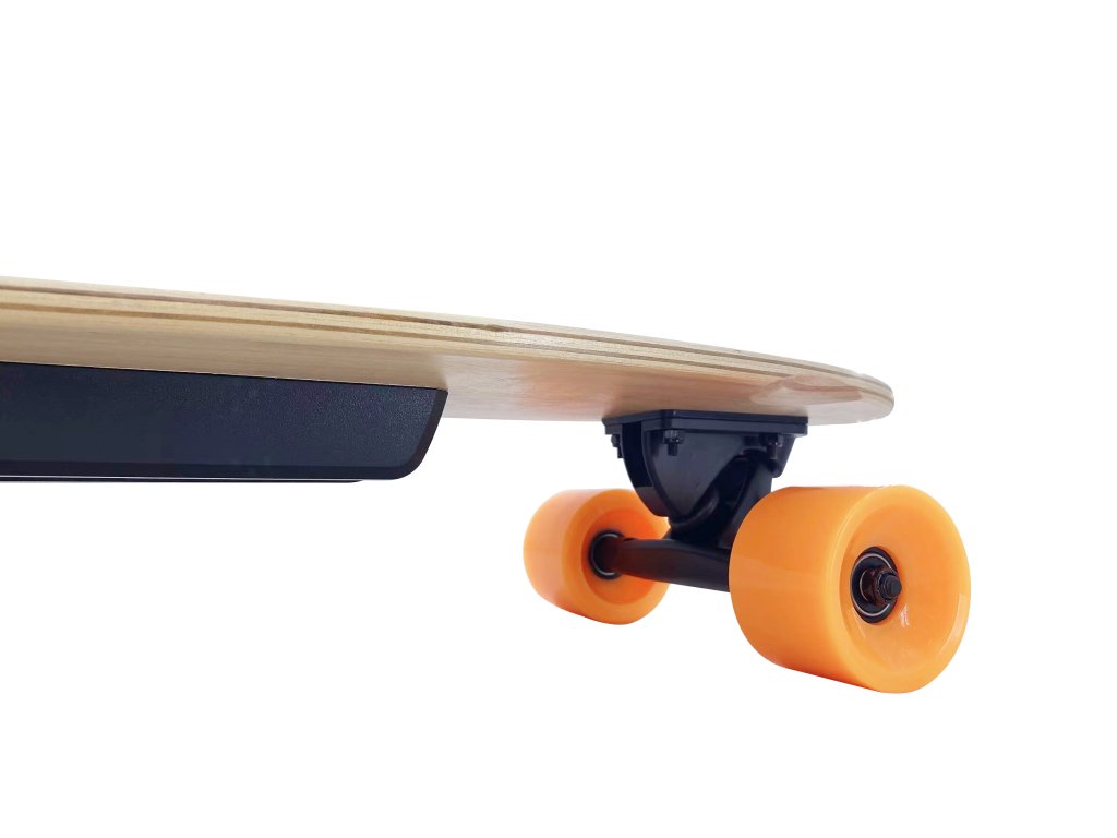 Deska skateboardu je tvořena 5 vrstvami, z nichž tři jsou bambusové a dvě skelné vlákno, což zaručuje výbornou pevnost a odolnost. Baterie s kapacitou 2,2 Ah poskytuje dostatečný dojezd, zatímco bezkartáčový stejnosměrný motor zajistí hladký a tichý provoz.