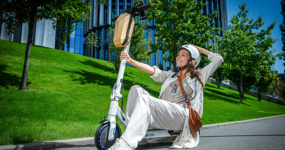Koloběžku COMFY lze snadno propojit přes Bluetooth s mobilní aplikací. Získáte tak přehled o stavu baterie, možnost uzamčení koloběžky nebo přepínání jízdních režimů – vše pohodlně ve svém telefonu.