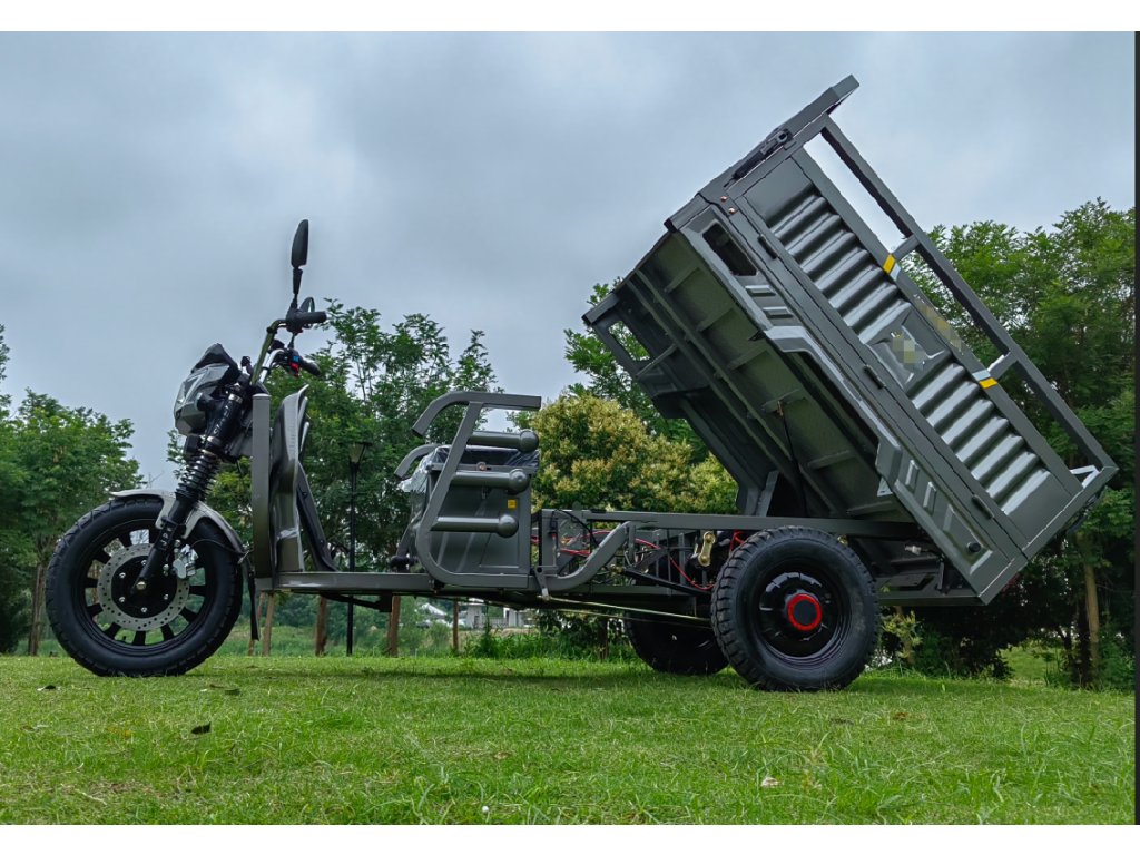RACCEWAY KUTIL je nákladní akumulátorová TŘÍKOLKA ideální pro nejrůznější práci na silnici i v terénu. Díky silné baterii s kapacitou 72 V / 58 Ah a motoru s výkonem 1500 W zvládne i náročné úkoly. Prostorná mechanicky sklápěcí korba s rozměry 160 x 120 x 50 cm umožňuje přepravu i větších nákladů s nosností až 600kg.