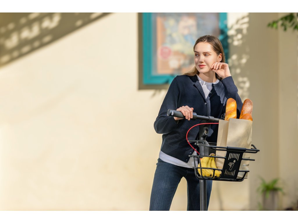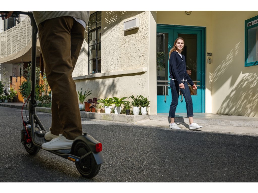 [1] Dojezd v režimu Eco: Testováno při jízdě s plnou baterií, 75 kg, zatížení, 25 °C, při rychlosti 15 km/h na chodníku.