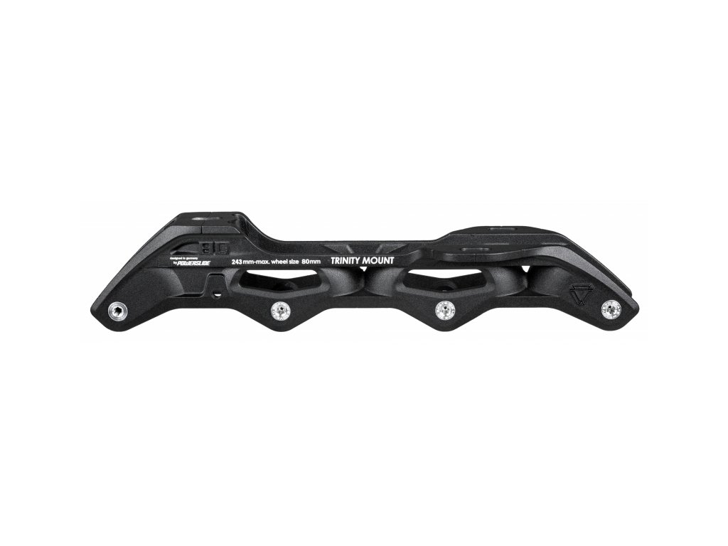Černé čtyřkolečkové framy Powerslide Elite 4x80 Trinity vyrobené z litého hliníku, vhodné pro fitness i freeskate bruslení.