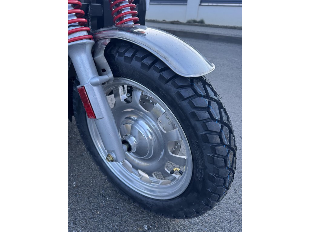 Kutil je vybaven přední kotoučovou brzdou a vzadu bubnovými brzdami, což zajišťuje bezpečné a efektivní brzdění i v náročných podmínkách. Pneumatiky o rozměrech 110/90-16" vpředu a 40-12" vzadu poskytují skvělou stabilitu a trakci na různých typech povrchů.