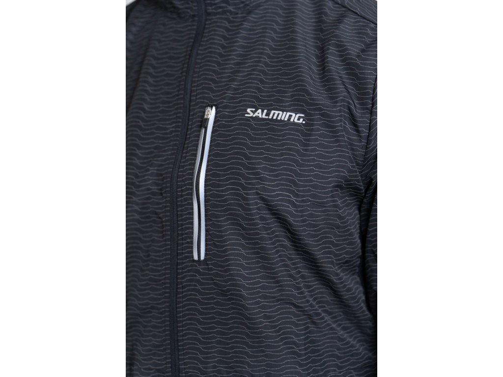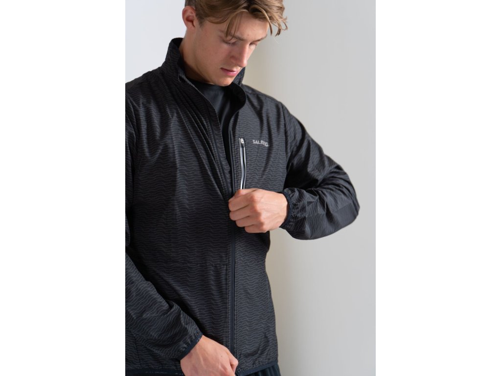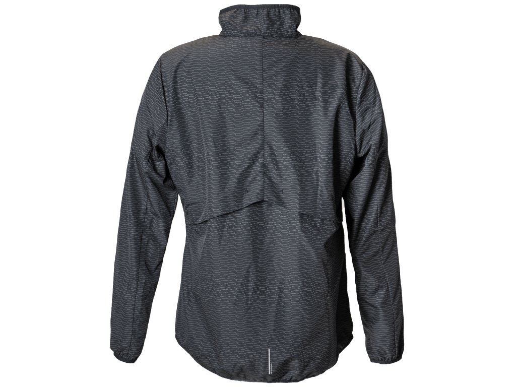Každého běžce pak potěší detaily v podobě solidně veliké náprsní kapsy na zip, a abstraktního reflexního potisku po celé ploše bundy, který zajistí jeho viditelnost i za zhoršených světelných podmínek.