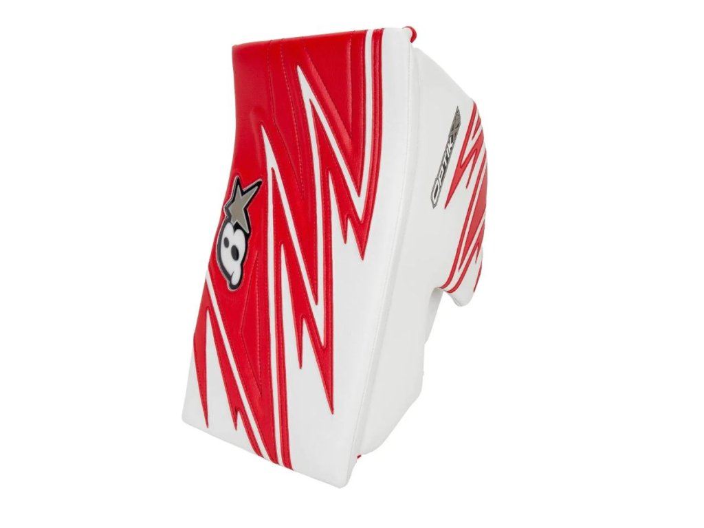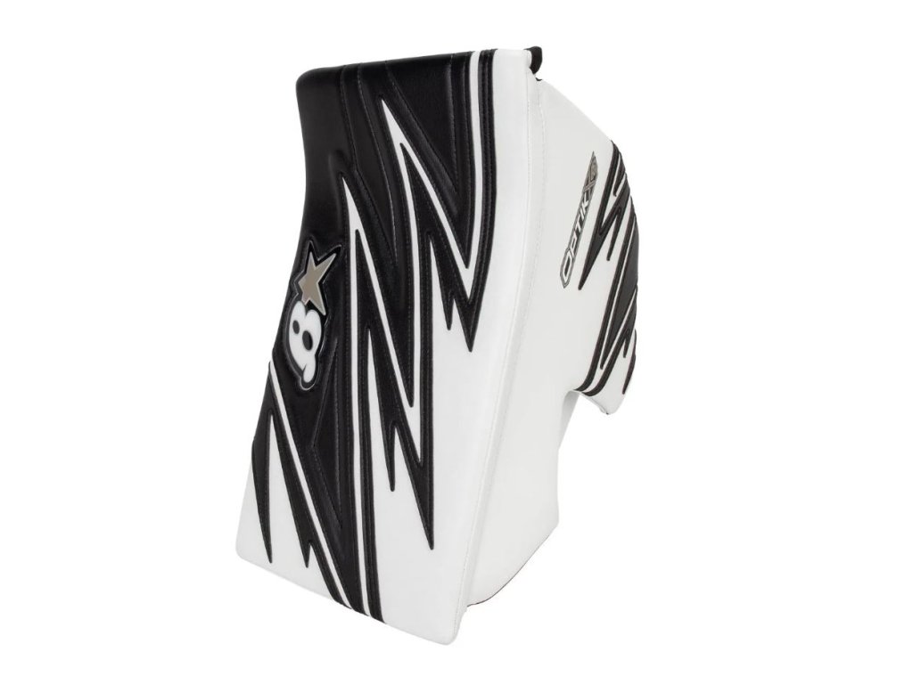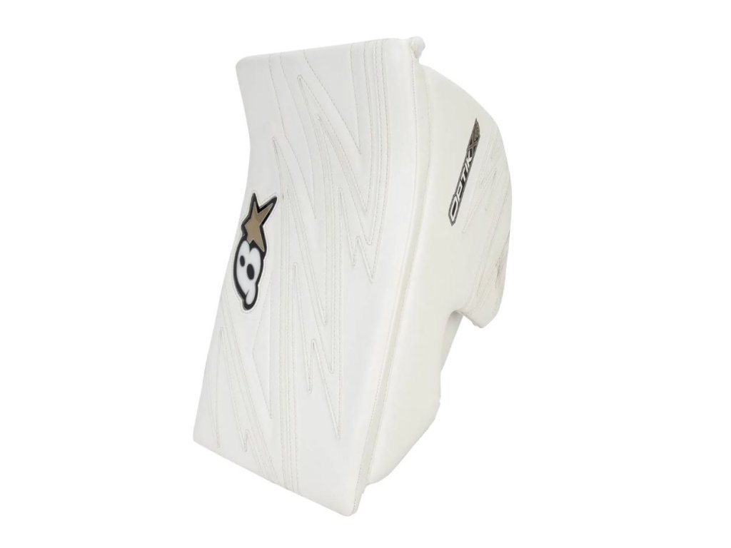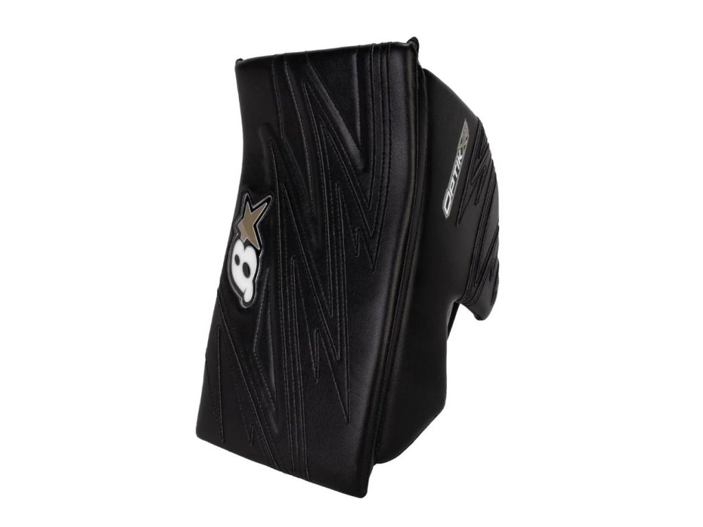 - Zpevněná boční stěna s hranatým palcem – Pevná boční ochrana s výplní z vysokohustotní pěny přináší jistotu při blokování střel, zatímco hranatý výřez palce usnadňuje manipulaci s holí.